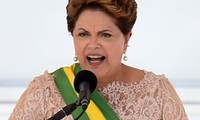 "Hoje depois de 12 anos de governo popular e de grandes transformações, o povo brasileiro tem o direito de dizer como uma orientação para o meu novo mandato: nenhum direito a menos, nenhum passo atrás. Só mais direitos e só o caminho a frente. Esse é meu compromisso sagrado perante vocês. Esse é o juramento que faço perante essa praça. Viva o Brasil, viva o povo brasileiro", discursou.Assim como havia feito momentos antes em discurso durante a cerimônia de posse no Congresso, Dilma voltou a afirmar que promoverá mudanças na economia sem afetar medidas para o desenvolvimento social."Assumo aqui com vocês, nesta praça, o meu compromisso de inaugurar uma nova etapa nesse processo histórico de mudanças sociais no Brasil e digo a vocês algo muito importante. Nós vamos fazer, sim, ajustes na economia mas isso sem revogar direitos conquistados ou trair nossos compromissos sociais. Fui reeleita para continuar mudando o Brasil e para continuar fazendo as mudanças que vocês desejam. E prometo: farei as mudanças", disse.